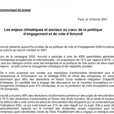Amundi présente aujourd’hui le bilan de sa politique de vote et d’engagement 2020 et précise les actions qui seront menées en 2021.
